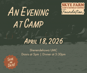 On April 18th, the Skye Farm Foundation is throwing their annual fundraising dinner: An Evening at Camp at Shenendehowa United Methodist Church. We'll be sharing a delicious meal prepared by familiar faces from the Skye Farm kitchen, listening and singing along with Skye Farm musicians, browsing new camp merchandise, and raising funds to support the long-term future of Skye Farm. NEW this year, we will be offering takeout dinner tickets in addition to the tickets to the in-person dinner. Doors…